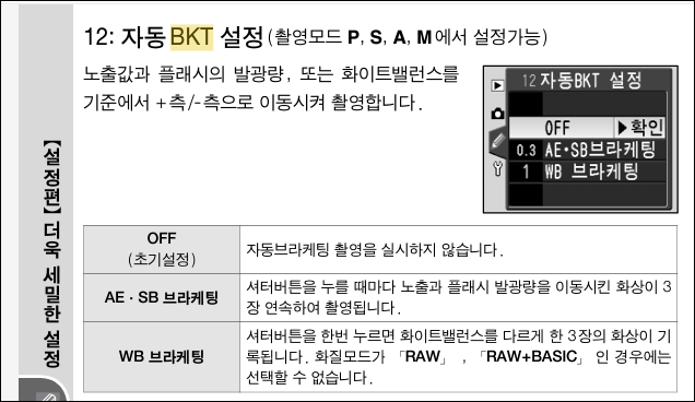 여기 보이는 것은 니콘 D50 메뉴얼에서 인용한 것이고요, 아직 BKT가 무엇인지 모르시는 분은 DSLR을 모르시는 분인데요, 요즘 스마트폰으로 촬영해도 웬만하면 사진이 잘 나오지만, DSLR과 스마트폰은 근본적으로 다를 수 밖에 없고요, 사진에 조금이라도 눈을 뜬 사람이라면 필연적으로 자연스럽게 DSLR에 관심을 가지게 되고요, 필자가 이번에 펴 낸 카메라 교본 책은 바로 이런 분들을 위한 책입니다.